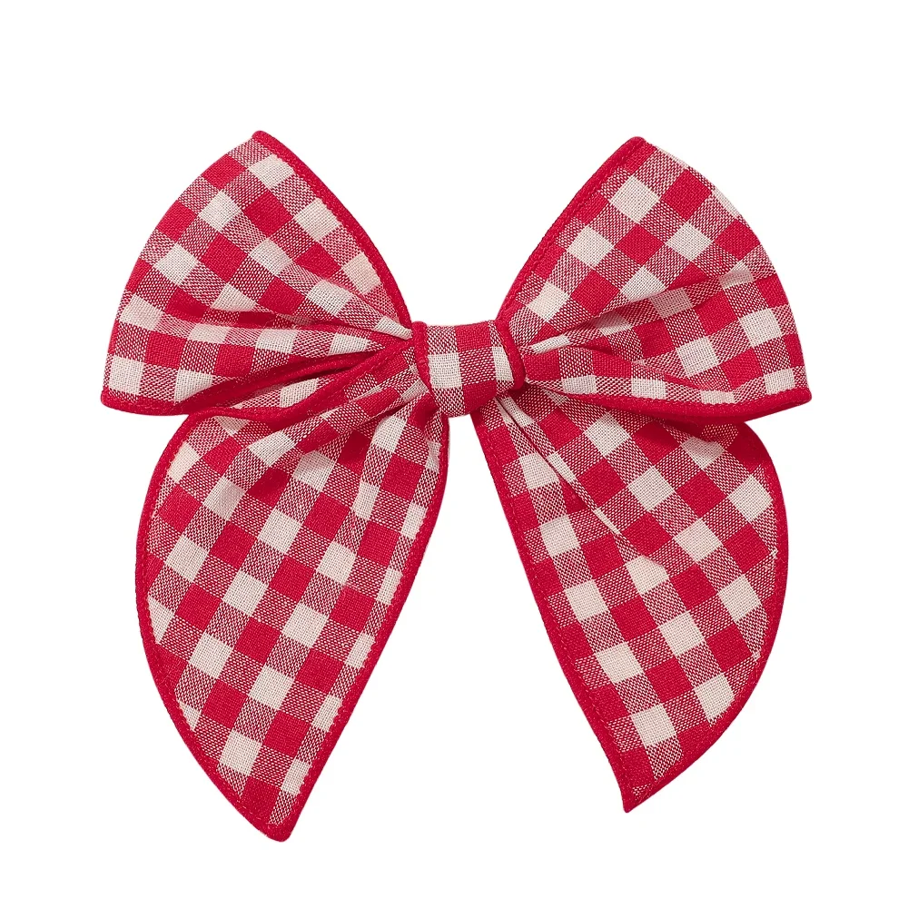 1 horquilla con lazo de animación de 5,7 pulgadas, pinzas para el cabello de tela de color navideño a cuadros clásicas hechas a mano para niños, accesorios para el cabello para niñas