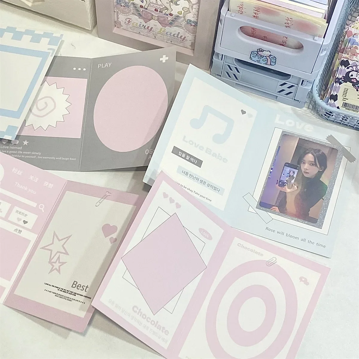 10 Uds. Tarjeta plegable de dibujos animados de Color caramelo coreano Ins, tarjeta fotográfica de estrella Kpop, Material de decoración de embalaje DIY, tablero de papel de fondo