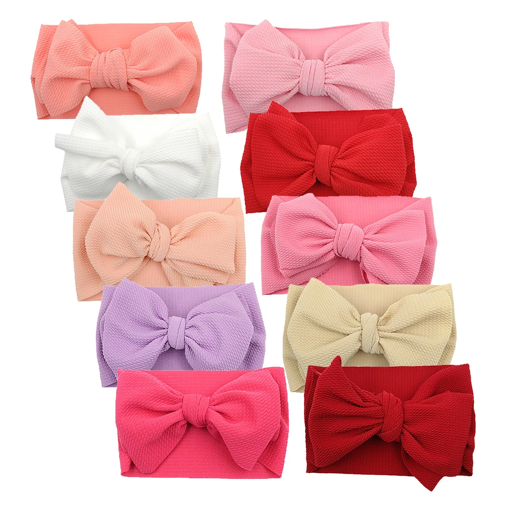 10 unids/lote de tela de bala sólida, turbante para bebé, diademas con estampado de puntos y flores, diademas con lazo grande, accesorios para el cabello para niños