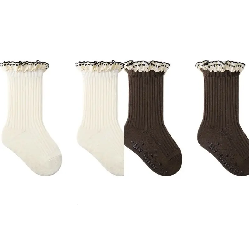 2 par/set lindo moda volante niño niña calcetín dulce princesa café Color marrón calcetín para niños primavera otoño calcetín de algodón suave