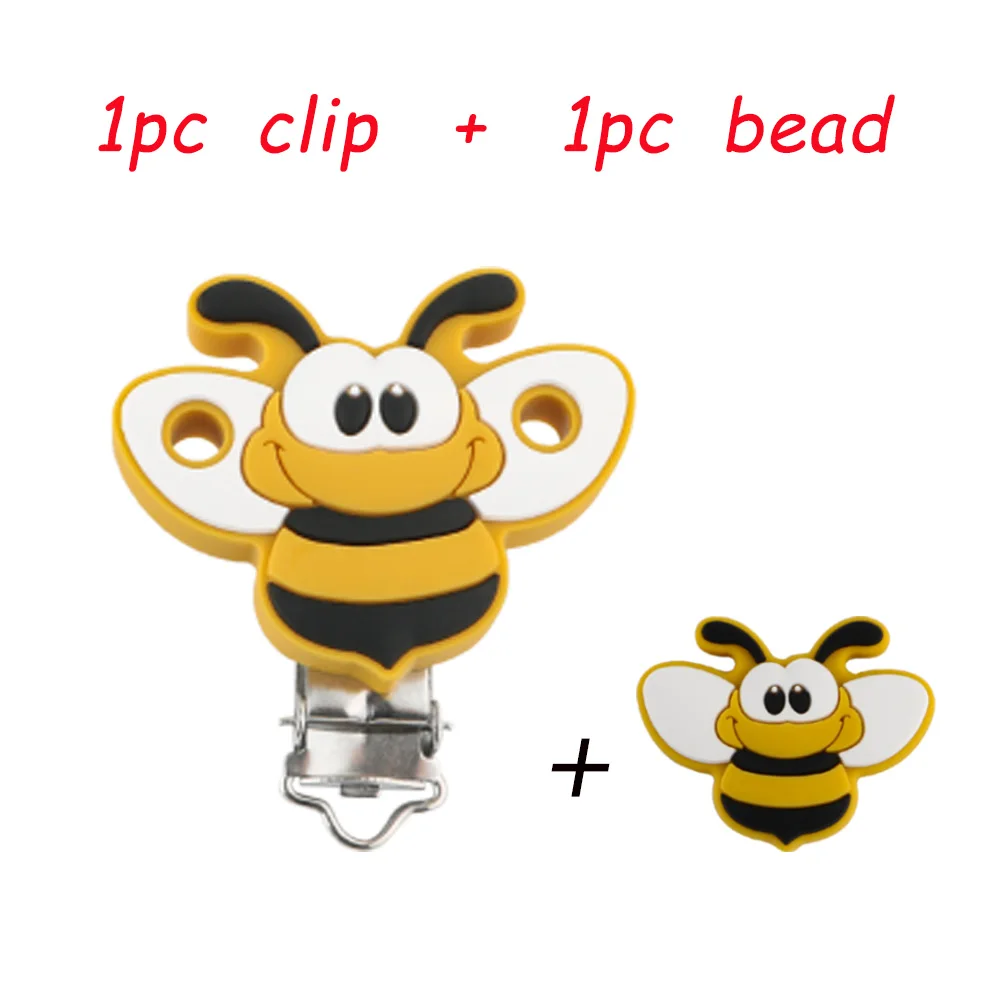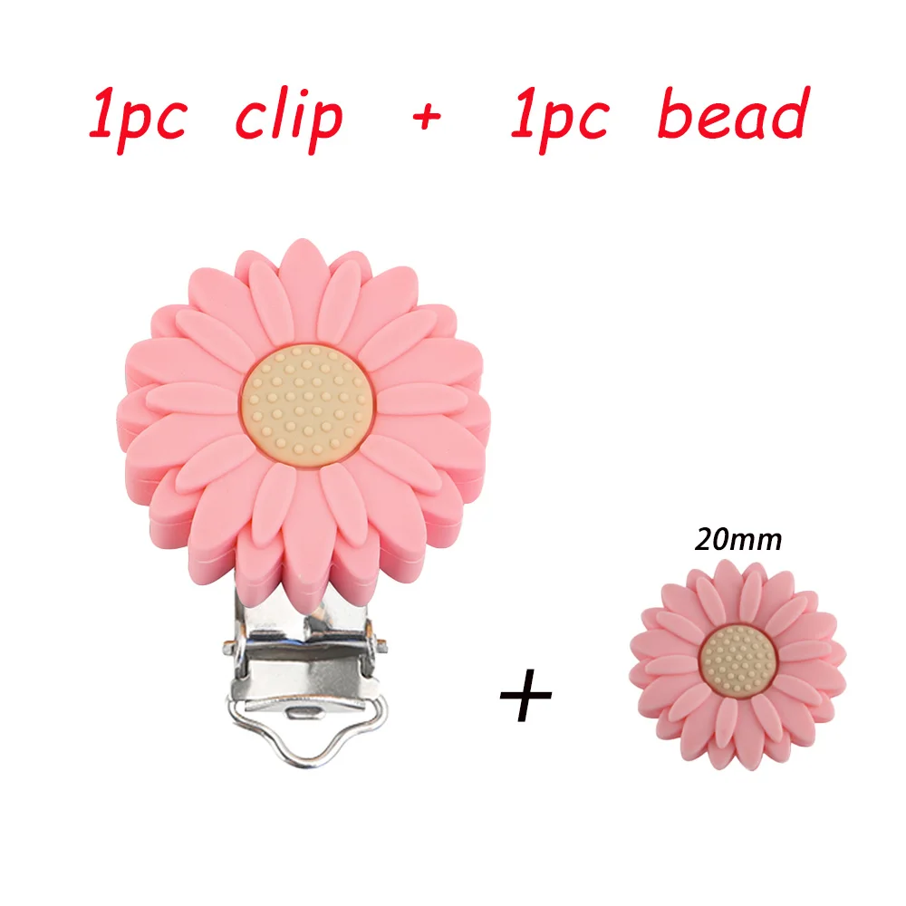 2 unids/lote de Clips de cuentas de silicona de arco iris de flores de animales de dibujos animados de calidad alimentaria para accesorios de collar de cadena de chupete DIY