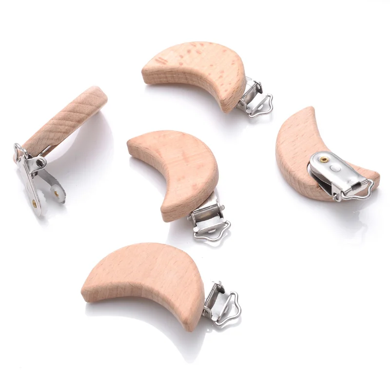 5 uds Clip de madera para chupete de haya Animal de madera Clip simulado Na...