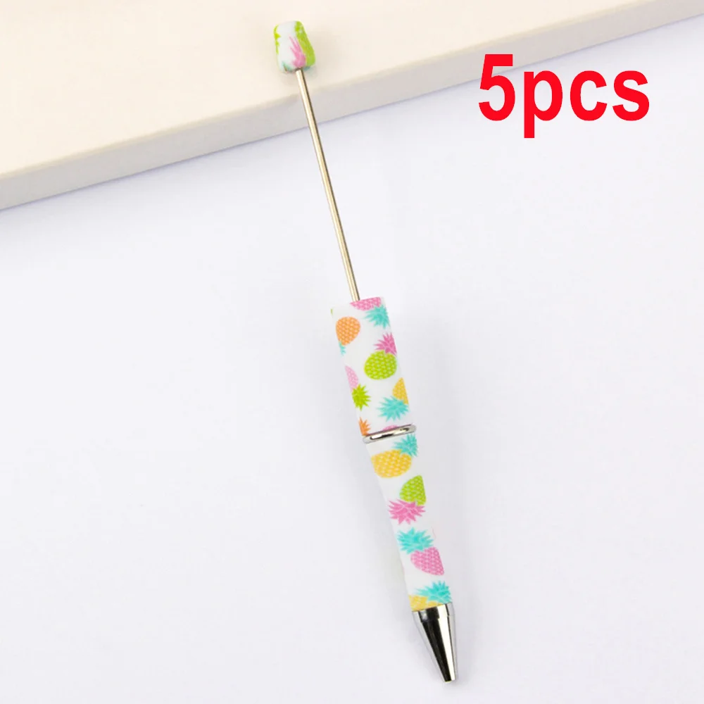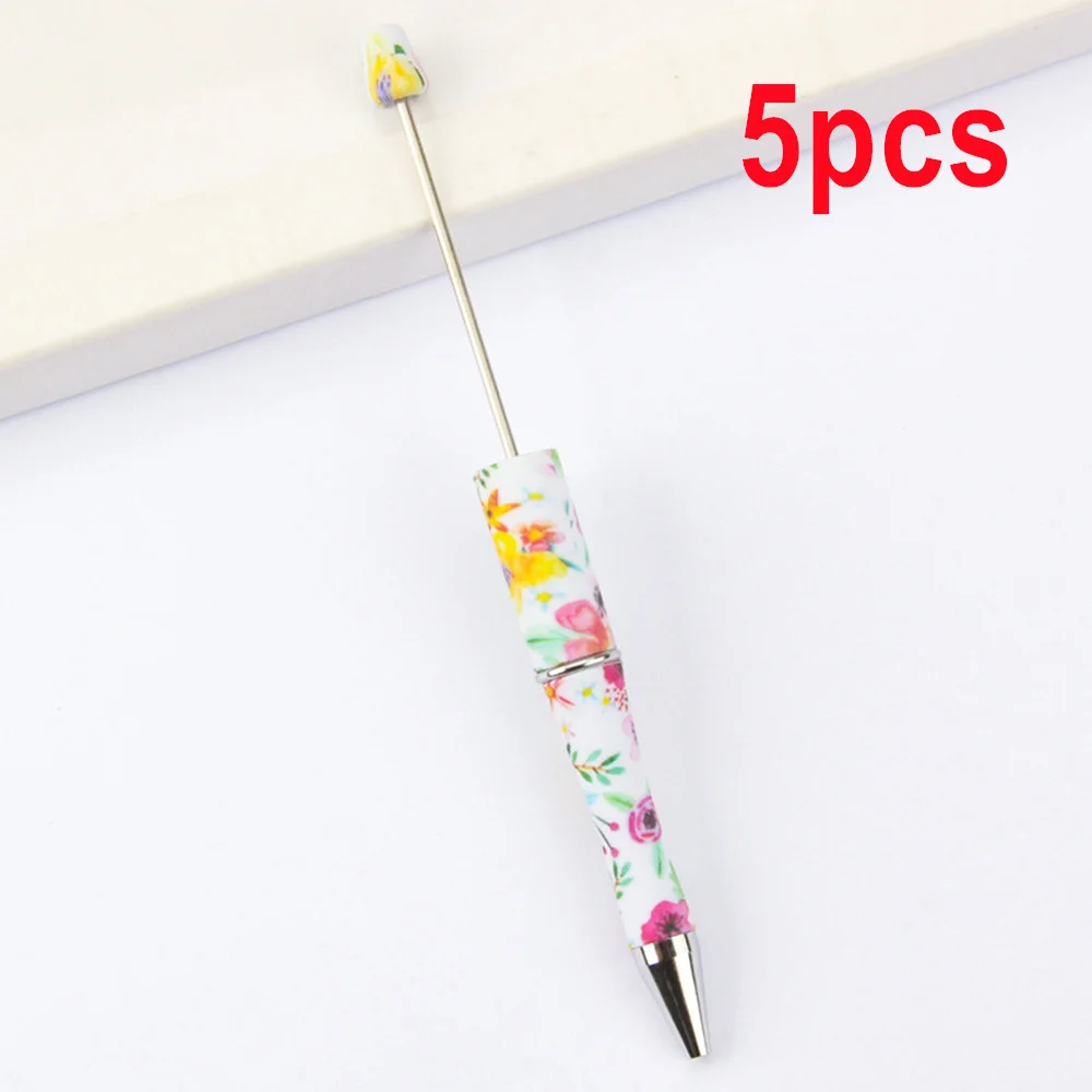 5 unids/lote de bolígrafo de plástico con estampado de leopardo, tinta negra, bolígrafo con cuentas DIY, regalos personalizados, accesorios para hacer joyas
