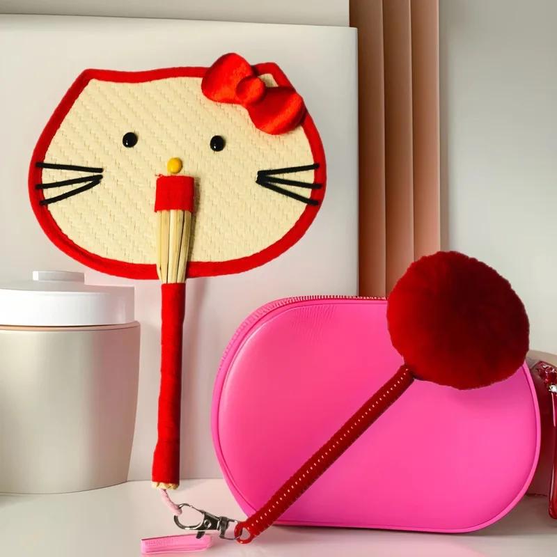 Abanico Sanrio Hello Kitty, abanico portátil de bambú Pu, abanico tejido de bambú hecho a mano colorido, abanicos artesanales de manivela, regalo de decoración del hogar