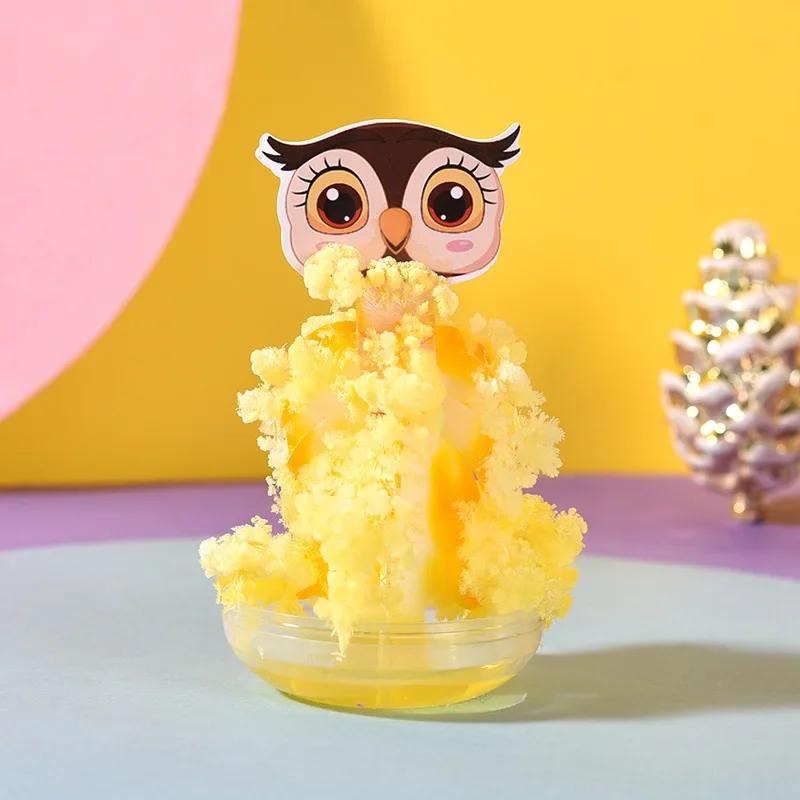 Add the special magic liquid to the base of the cardboard tree and watch the crystal to grow.