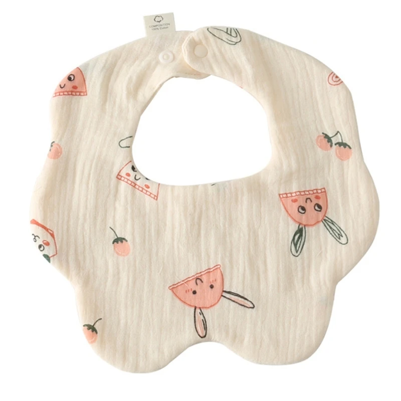 Utilizando 6 capas de tela crepé para producir + 1 capa de capa impermeable, que puede evitar que la saliva del bebé penetre en la barbilla y provoque la barbilla roja.