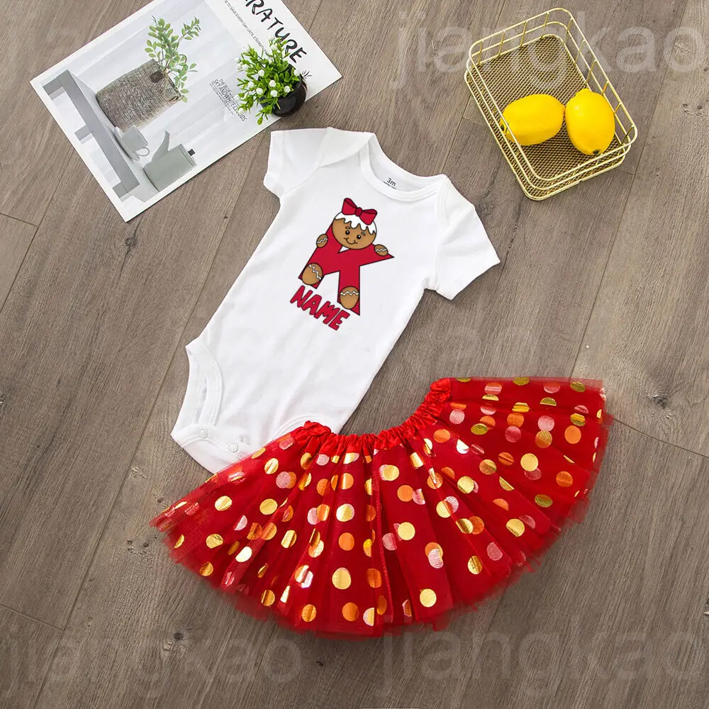Body de Navidad personalizado para bebé y niña, conjunto de tutú con inicial y vestido de pastel de nombre, mono de vacaciones, falda, traje de fiesta de navidad