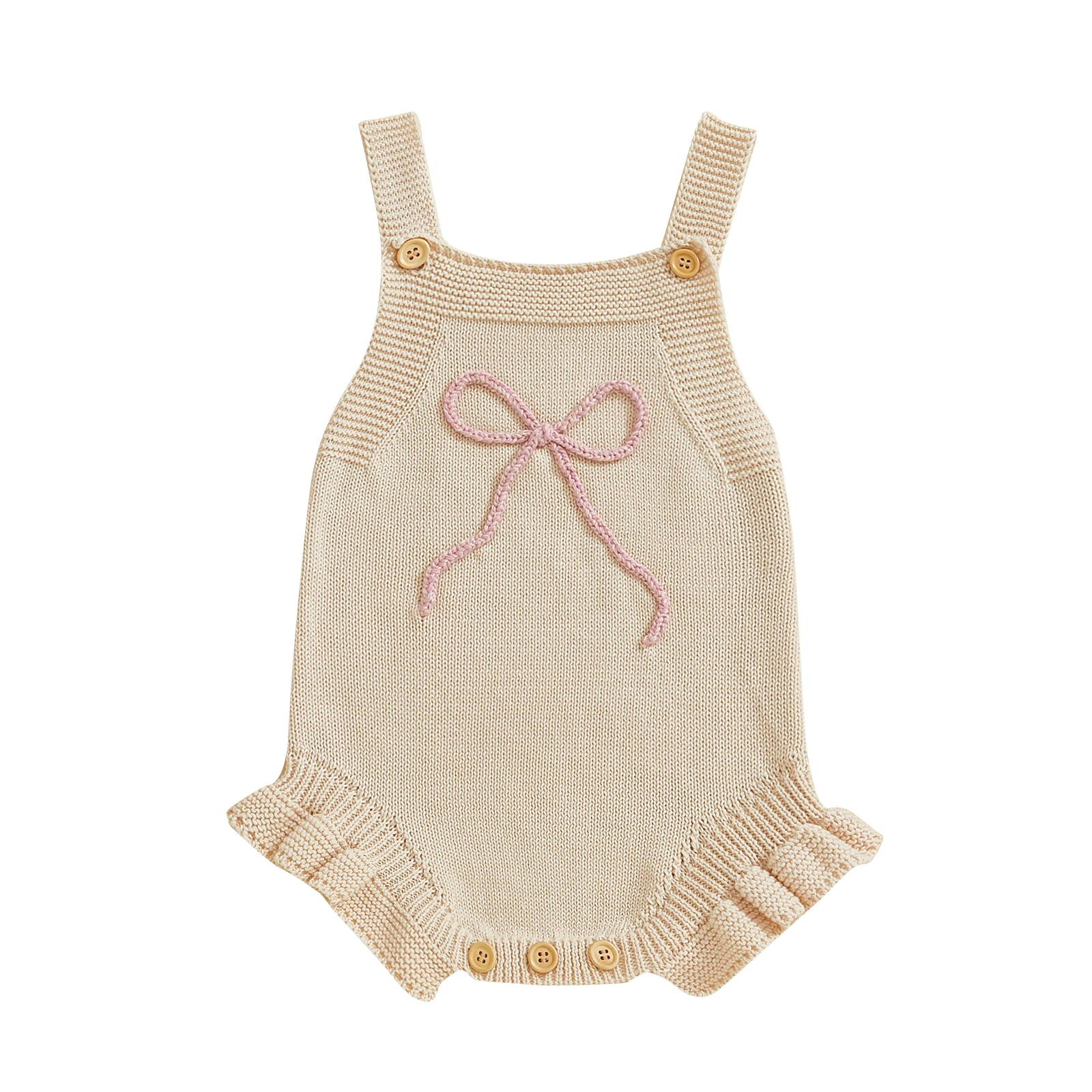 Mono de punto para niñas, pelele sin mangas con bordado de lazo, primavera y verano