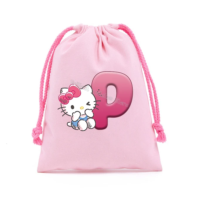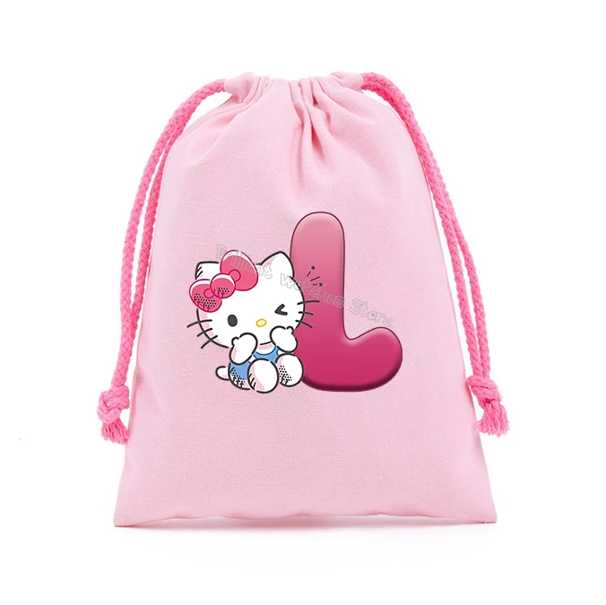 Bolsa con cordón de Hello Kitty, bonita bolsa de regalo de dibujos animados con letras de A-Z, bolsa con cordón, bolsa de fiesta de algodón, bolsas de almacenamiento, bolsas de gran capacidad