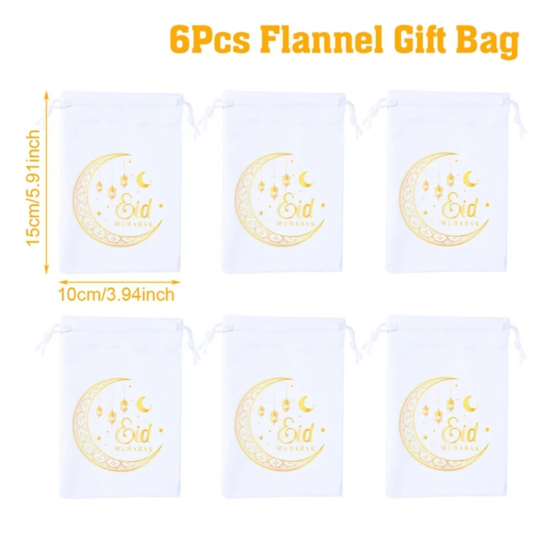 Bolsa de regalo de terciopelo negro Eid Mubarak, decoración musulmana islámica musulmana de Eid al-Fitr, regalo para niños y niñas, 6 uds.