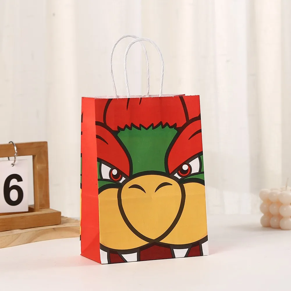Bolsas de compras coloridas de Super Mario Bros, bolsas de papel Kraft de mano para dulces, regalo de decoración de fiesta de boda, 1/9 piezas