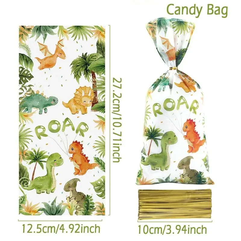 Bolsas de regalo de dinosaurio de dibujos animados, bolsa de embalaje de galletas y dulces, decoración de fiesta de cumpleaños de animales de la selva para niños, suministros para Baby Shower
