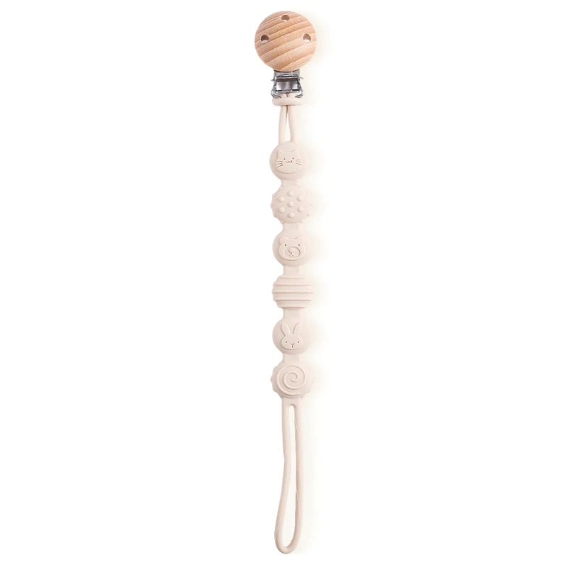 Cadena de chupete infantil de silicona, pinza de madera, cadena antideslizante de silicona de grado alimenticio, soporte de pezón, lactancia de bebé, buena dentición, 1 unidad