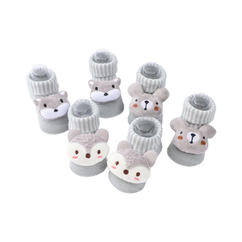 Calcetines de algodón antideslizantes para bebé, medias cortas de dibujos animados para recién nacido, para bebés de 3 a 12 meses, 3 pares