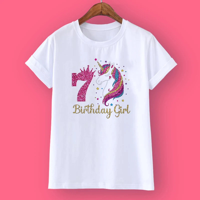 Camiseta de cumpleaños de unicornio 1-12 Camiseta de cumpleaños Camiseta salvaje Camiseta de fiesta para niñas Ropa temática de unicornio Regalos para niños Tops de moda Camiseta