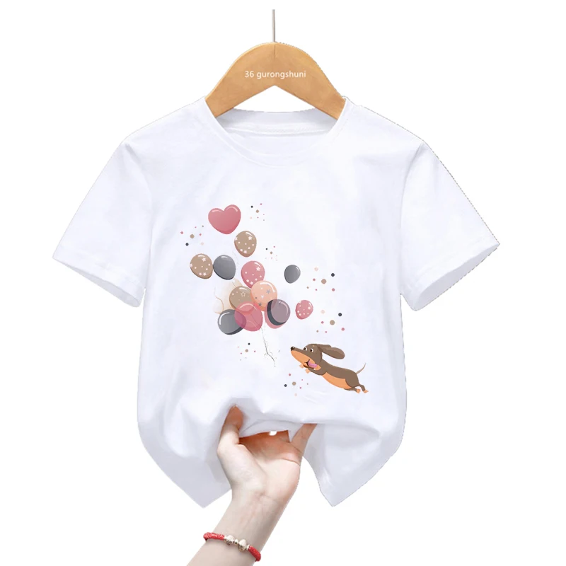 Camiseta divertida con estampado de animales y globos de amor de perro salchicha, camiseta Kawaii para amantes de los perros, ropa para niños, camisetas de verano