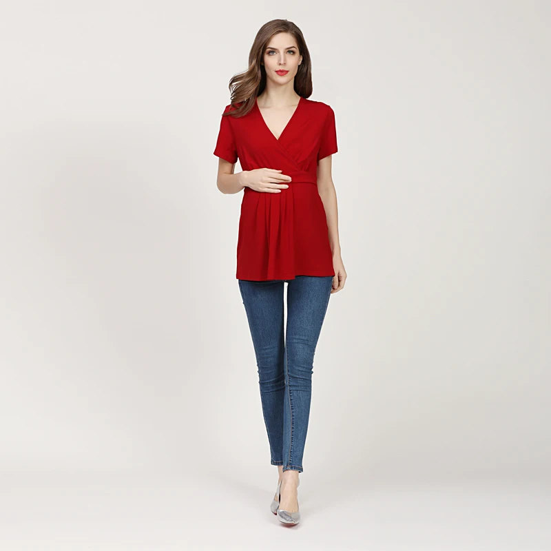 Emotion Moms Camiseta de verano para embarazadas Tops de maternidad Camisa de talla grande para mujer Ropa de color sólido