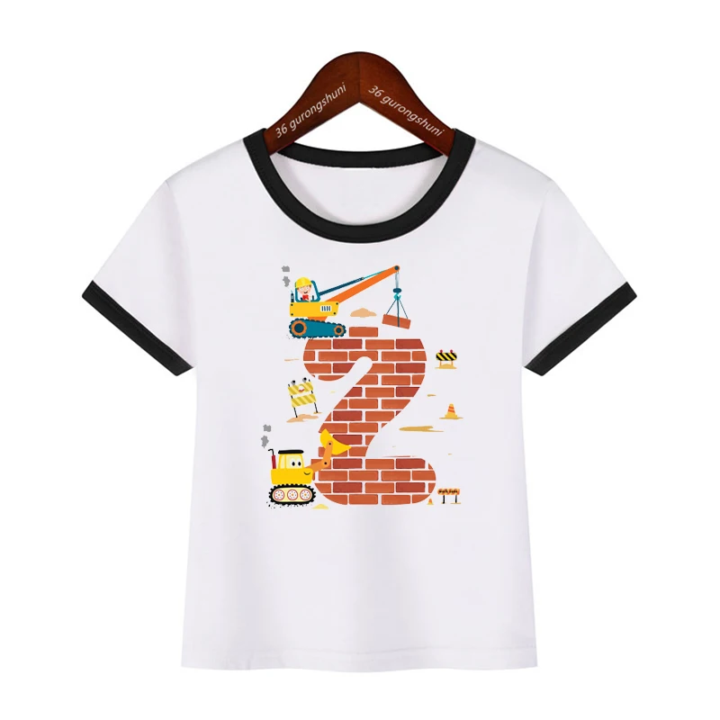 Camiseta de manga corta con estampado de excavadora en estilo Kawaii, ideal como regalo de cumpleaños para niños.