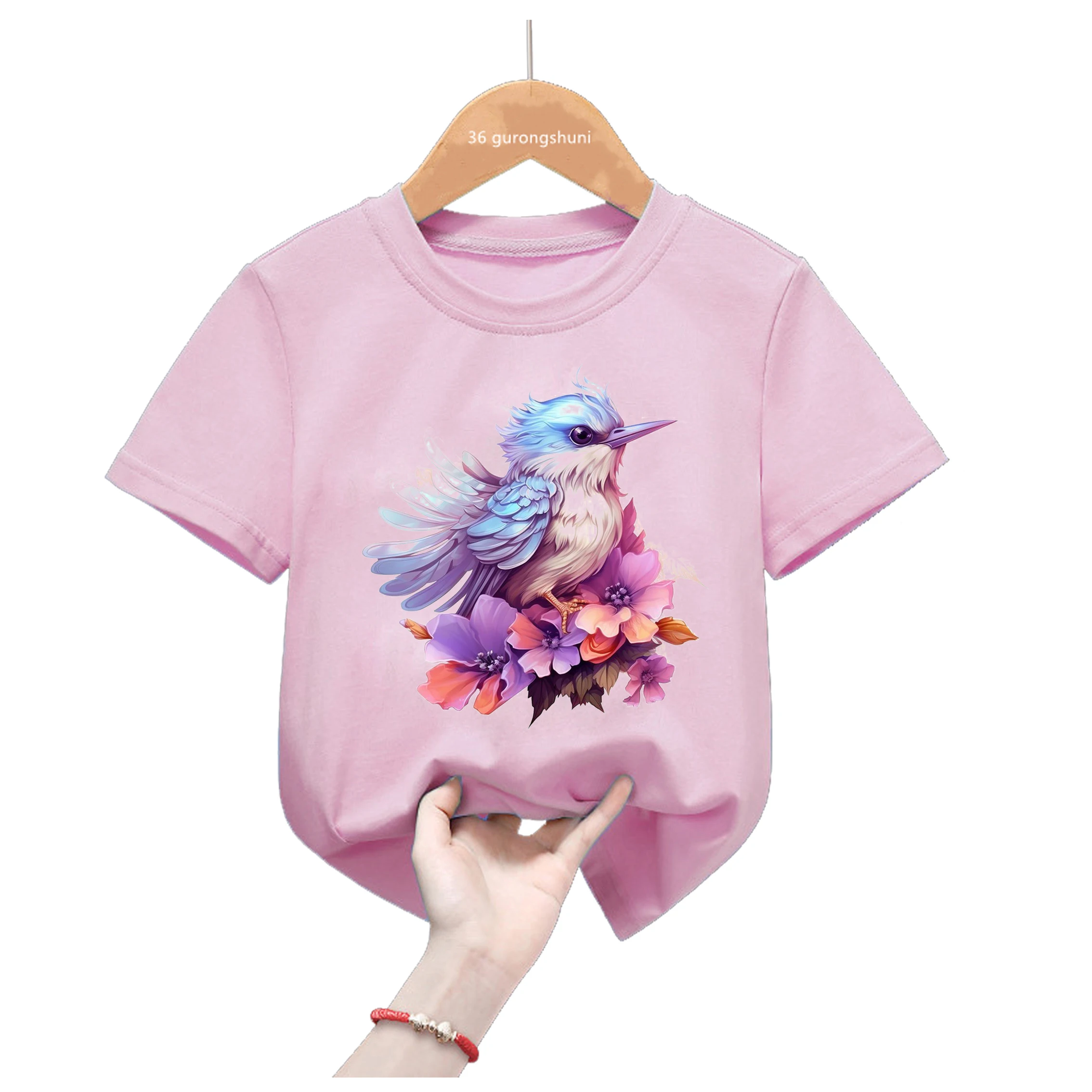 Camiseta Kawaii con estampado de búho y libro de amor para niñas, ropa de verano de manga corta con pájaros bonitos, color rosa, gran oferta, 2024