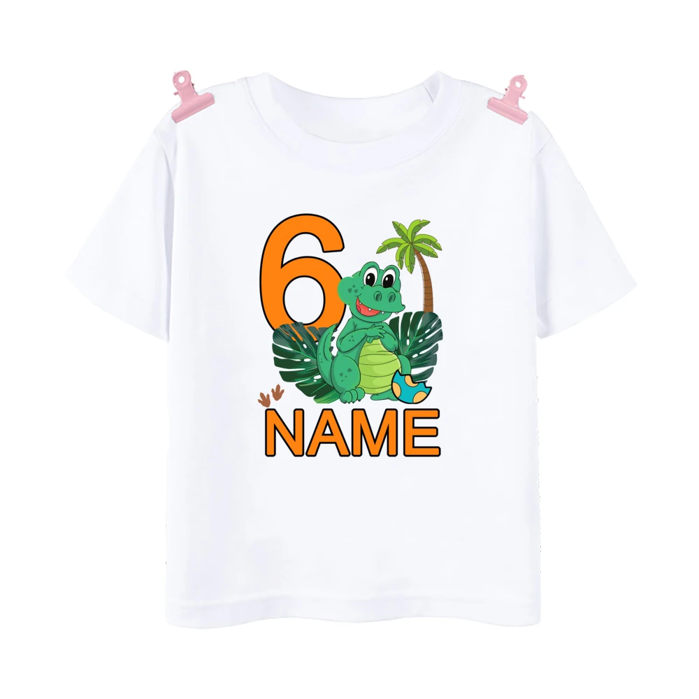 Camisa personalizada de cumpleaños para niños, camiseta de dinosaurio con nombre 1-9, camiseta de cumpleaños, camisetas salvajes para niños, ropa de fiesta temática Dino