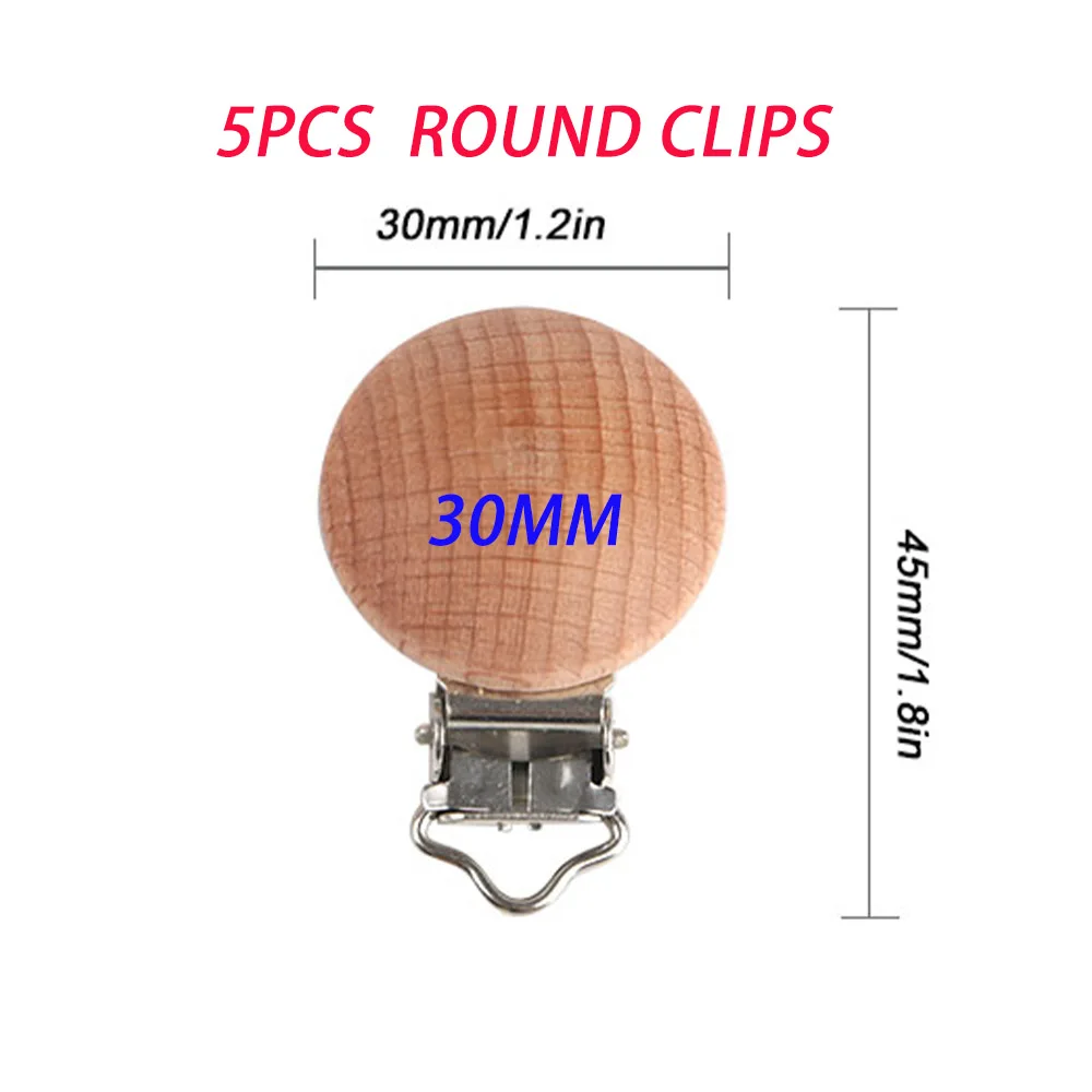 5 unids/lote Clip de dibujos animados de haya Natural producto de madera para la fabricación de joyas DIY Cadena de chupete artesanías de madera regalos accesorios de juguete