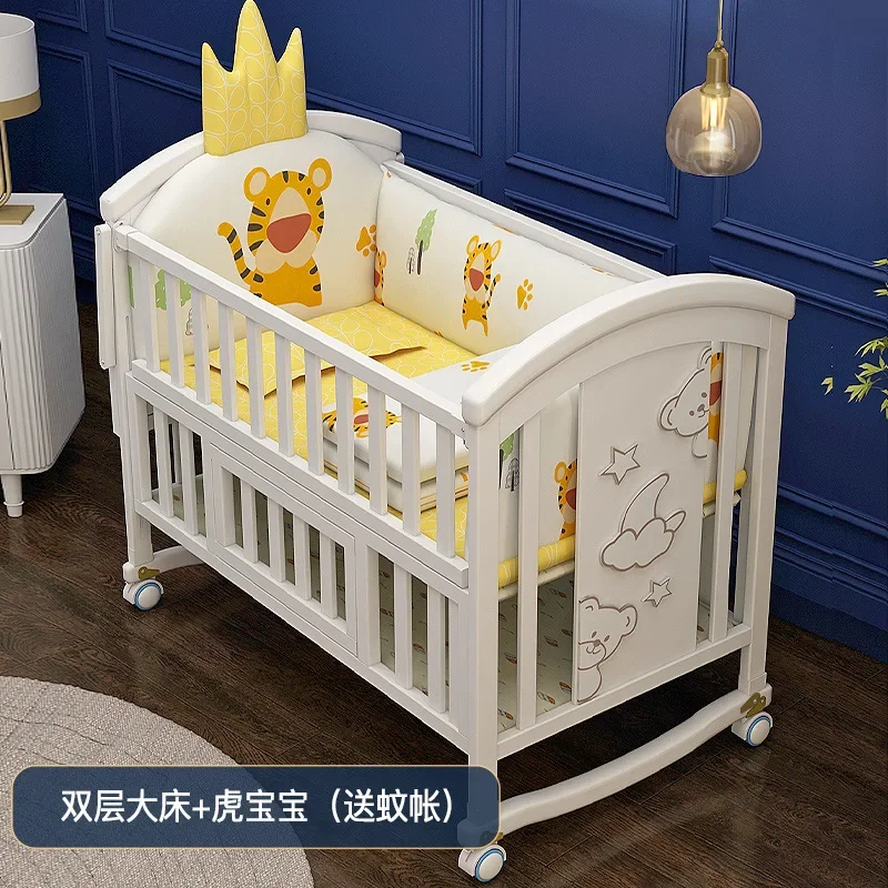 Cuna de madera maciza europea blanca extraíble para bebé bb, cuna multifunción para recién nacido, cama queen empalmada para niños