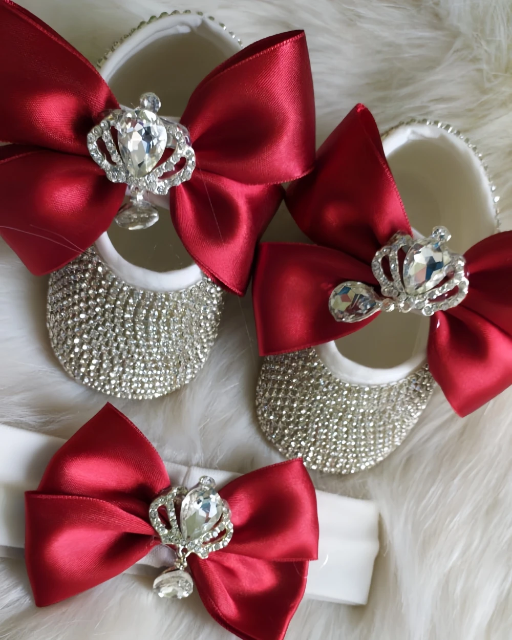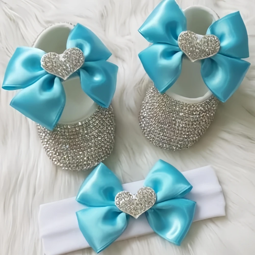 Dollbling Sparkle Bling zapatos de bautizo para bebé perlas blancas primeros caminantes zapatos de regalo de Navidad de lujo para niños y conjunto de diadema