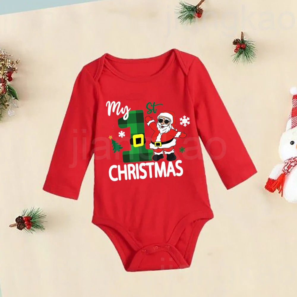 It's My 1st Christmas Baby Romper Deer Printed Body infantil Navidad Recién nacido Algodón Manga larga Mono Niño Ropa de Bautismo