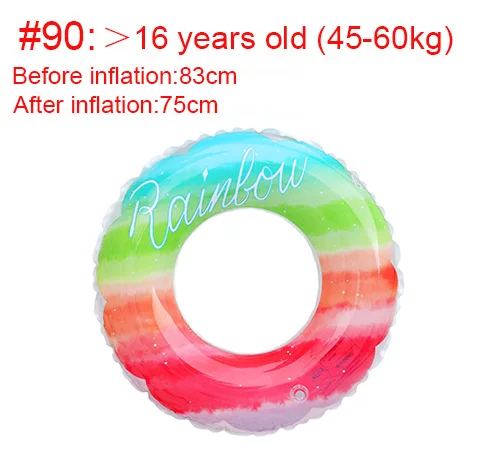 Foats de piscina arcoíris para adultos y niños, tubo inflable, círculo gigante, flotador engrosado, juguete divertido de agua, regalos para vueltas de natación