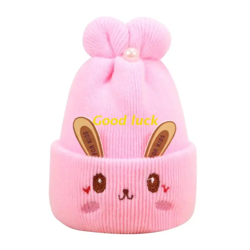 Gorro de punto para recién nacido, gorro cálido con orejas de conejo, gorros a prueba de viento, tocado transpirable para exteriores, gorros cálidos para bebé QX2D