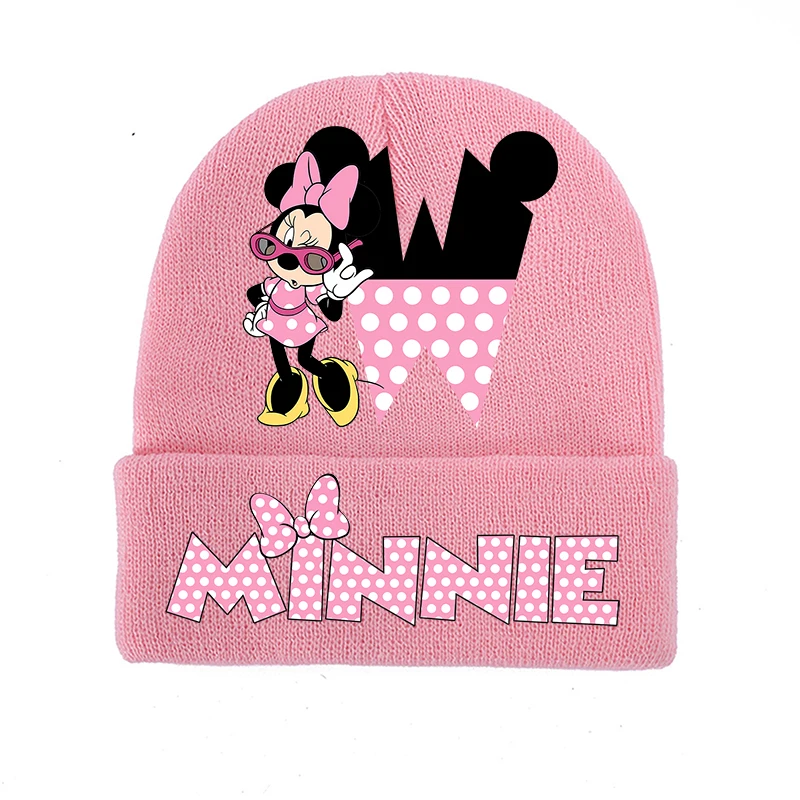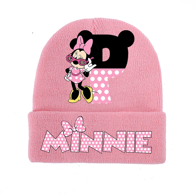 Gorro de punto de Mickey Mouse para niñas, gorro de algodón con letras de Minnie, Disney, A-Z, bonito, de lana, de dibujos animados, regalo para niños