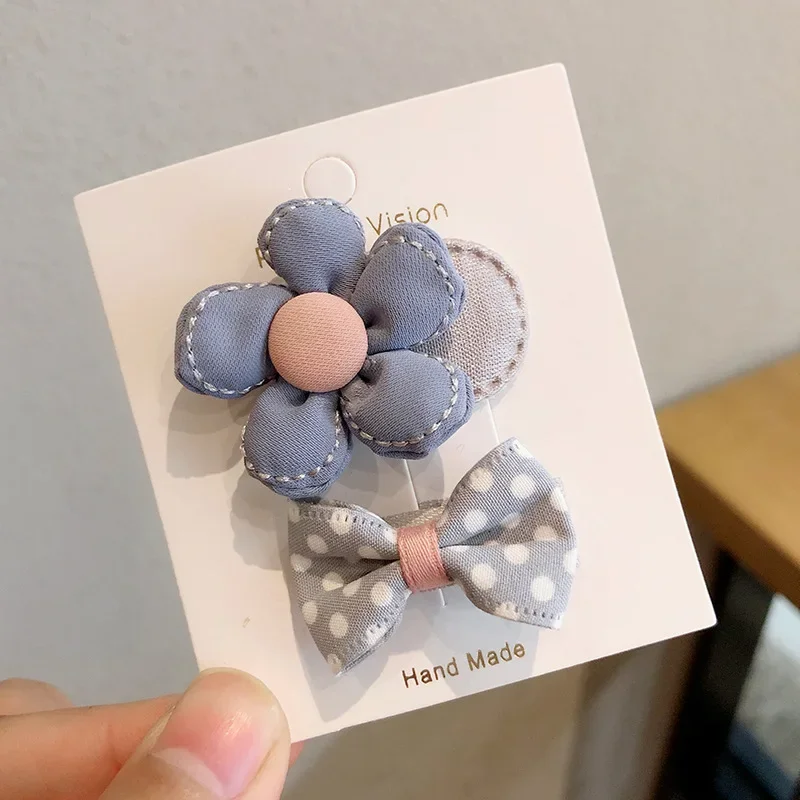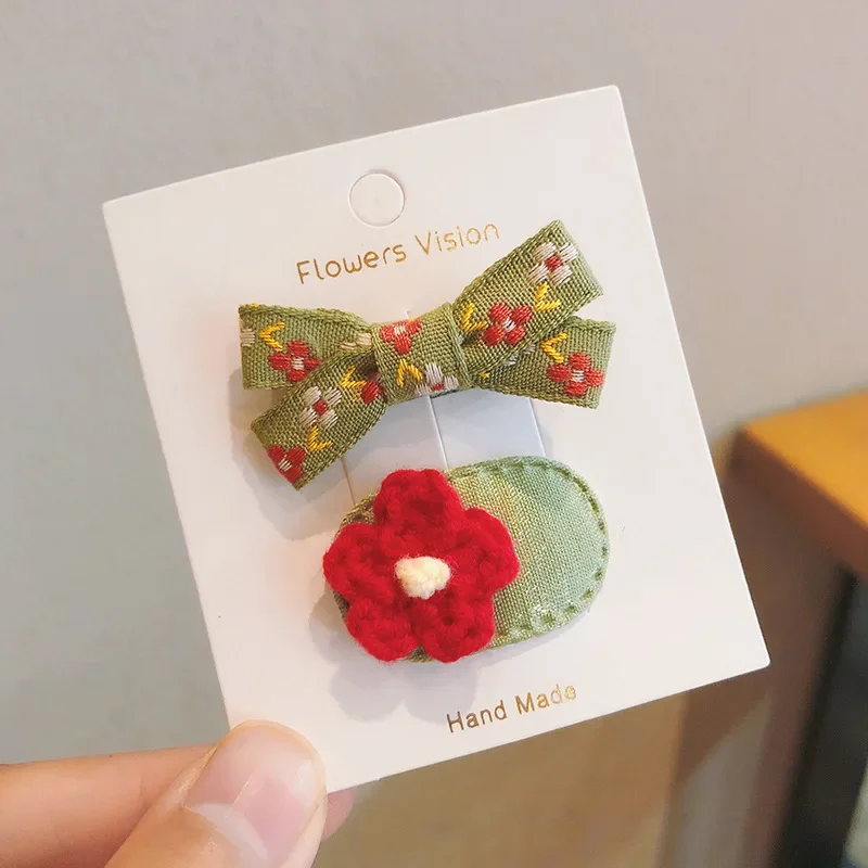 Horquillas con pompones y lazo de flores para niña, horquillas coreanas con bordado a cuadros, accesorios para el cabello, 2 piezas