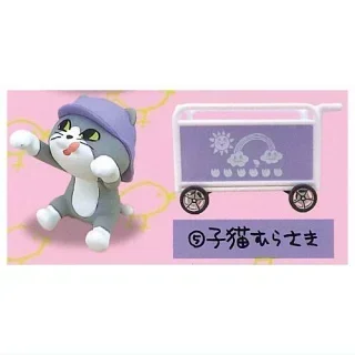 Lindo gato adulto llevando a los gatitos a la escuela. Se suministra con un juego de brazos de repuesto y una bandera en miniatura.