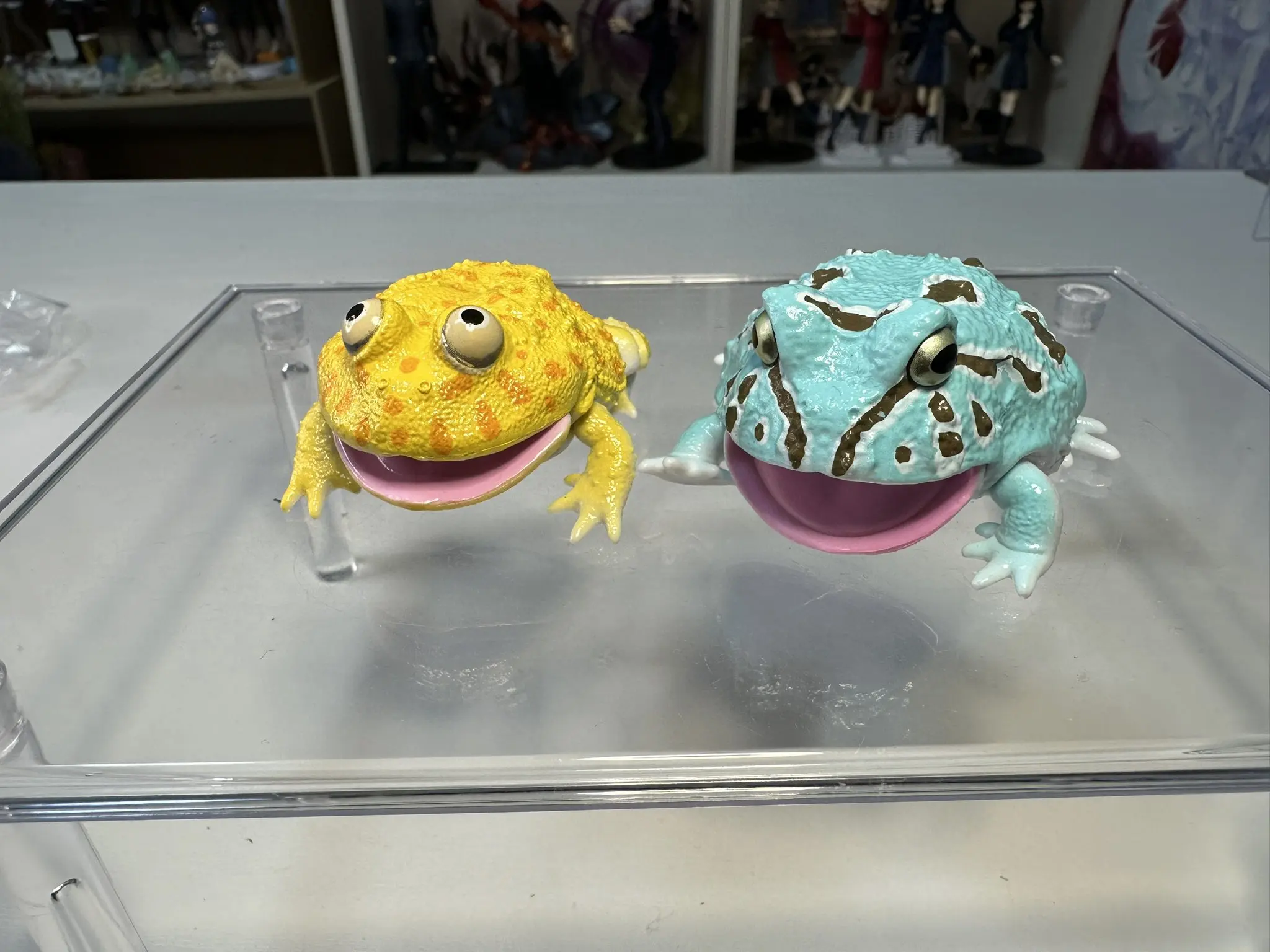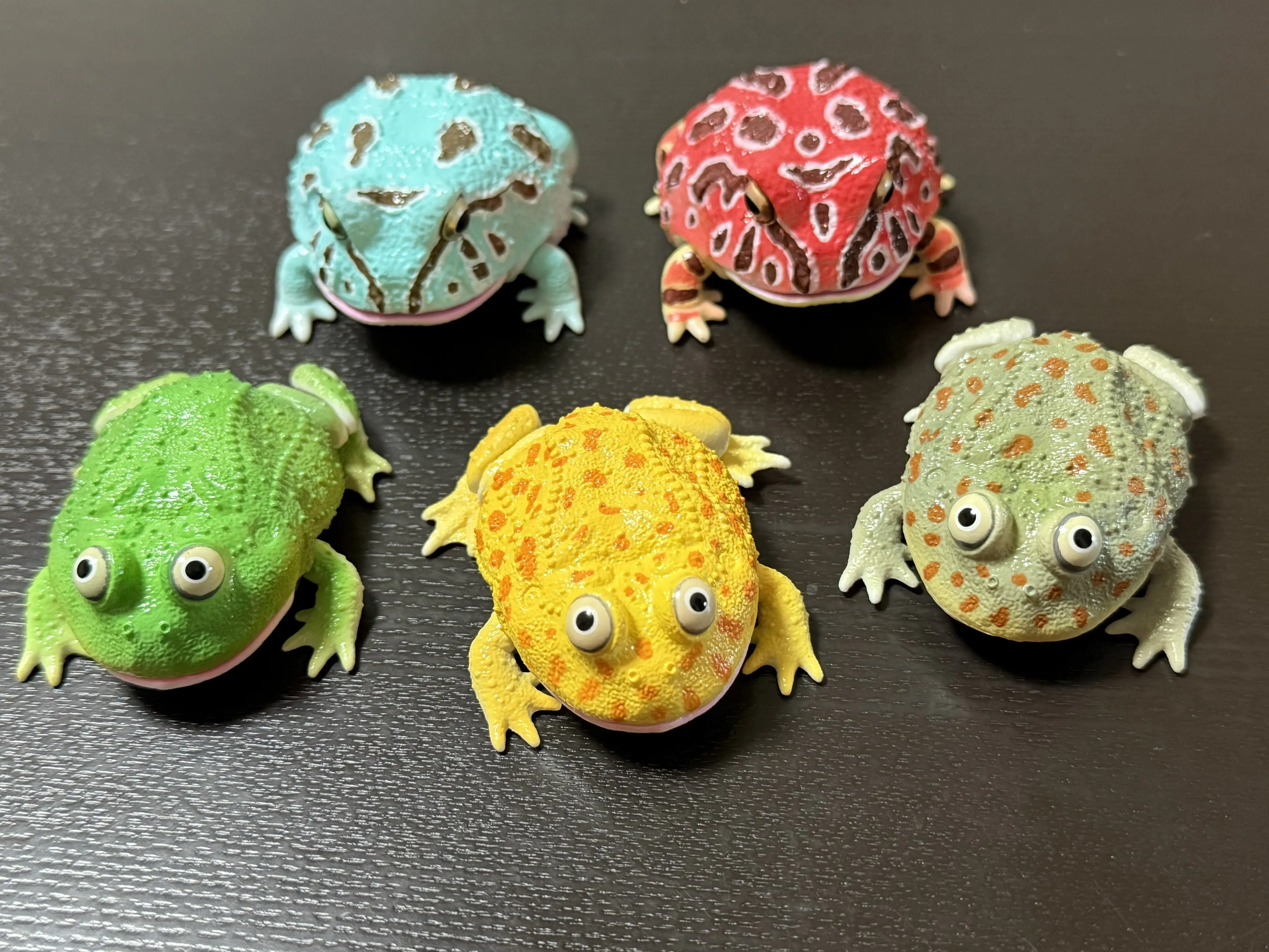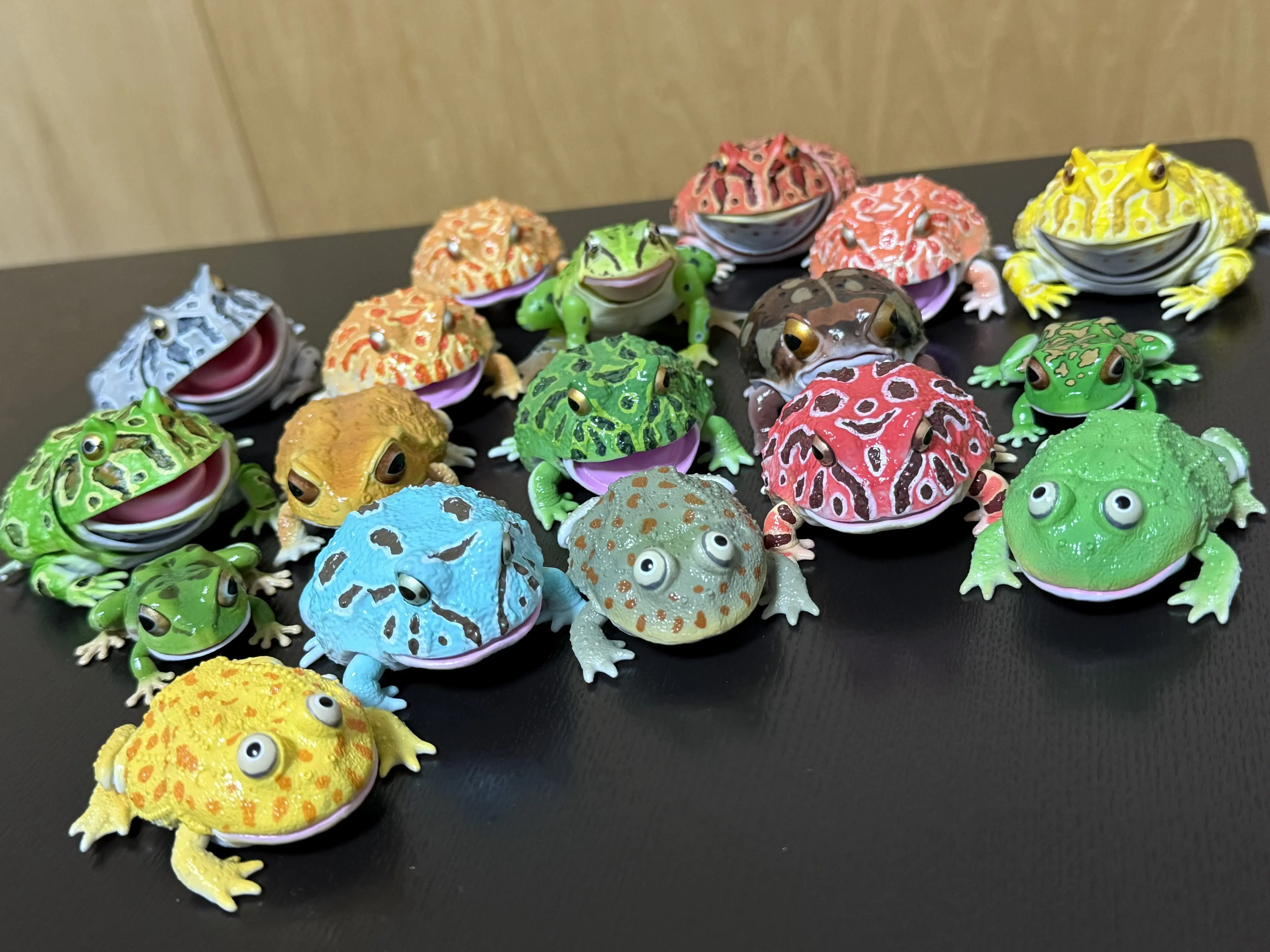 Juguetes cápsula originales, enciclopedia Ikimono realista, Repti Budgett, rana y Cranwell, adornos elásticos para pierna y boca de rana con cuernos