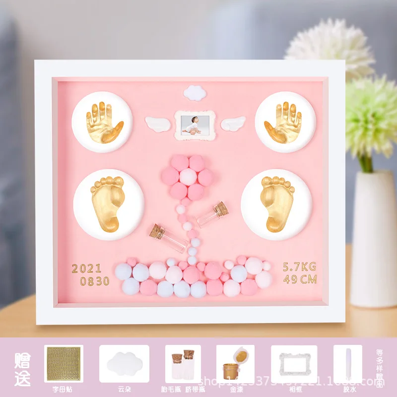 Accesorios de impresión de pies de mano para bebé, almohadilla de tinta para recién nacido, cien días de aniversario, almohadilla de tinta de luna llena, marco de fotos, recuerdo de crecimiento infantil