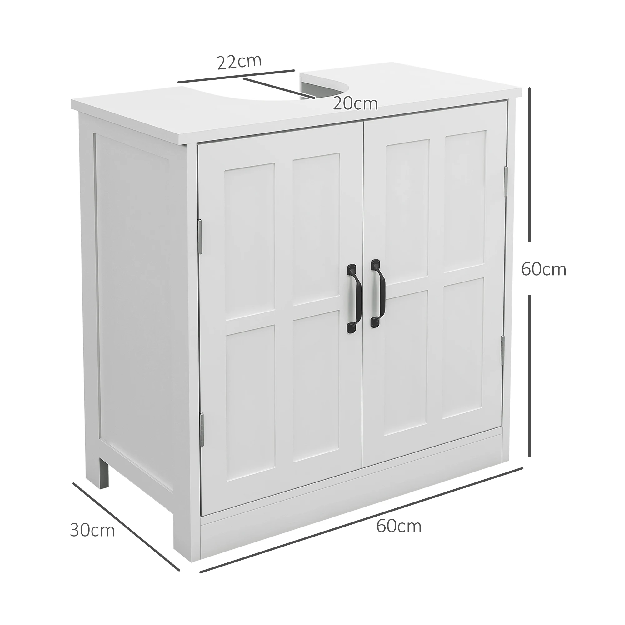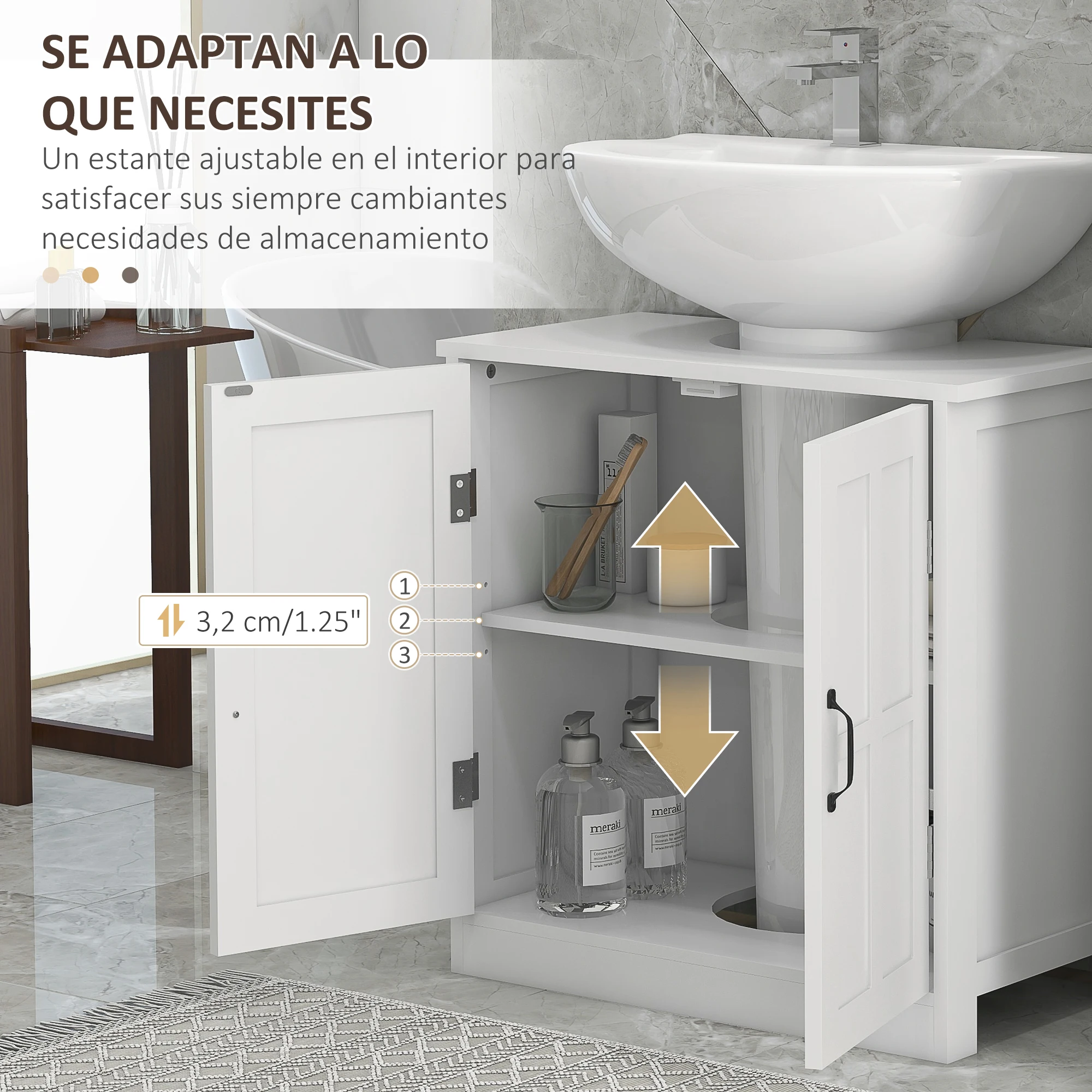 kleankin Mueble para Debajo del Lavabo Mueble de Baño Bajo Lavabo Armario Bajo del Lavabo con Estante Ajustable y Puerta Doble Carga 20 kg 60x30x60 cm Blanco