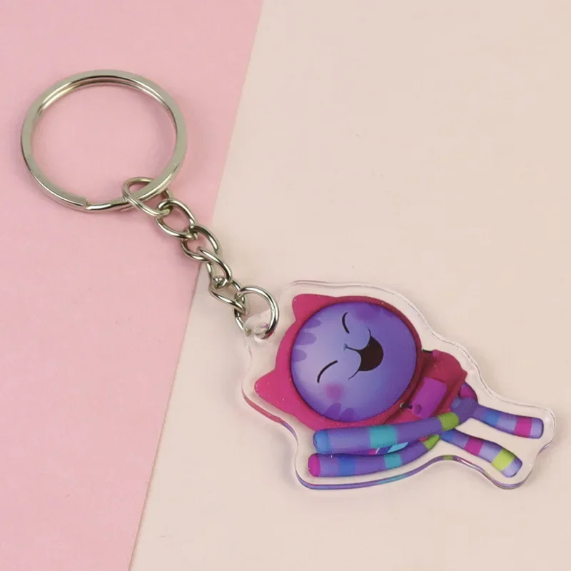 LLavero de acrílico Kawaii Gabby para casa de muñecas, bonito llavero de Anime, accesorios, bolso escolar para niños, colgante de llave de coche, juguetes de cumpleaños, regalo para niña