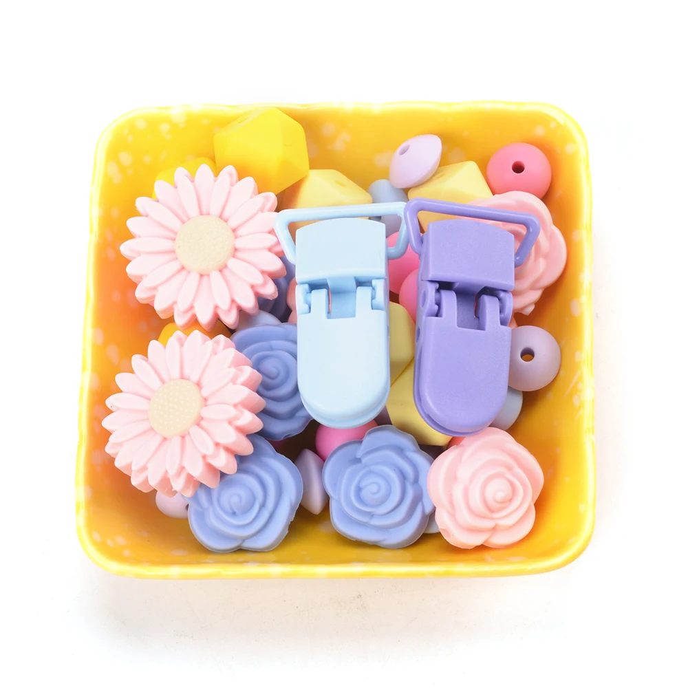 LOFCA-Cuentas de dentición de silicona en forma de Margarita para bebé, cuentas de dentición de tesoro, de colores, masticables