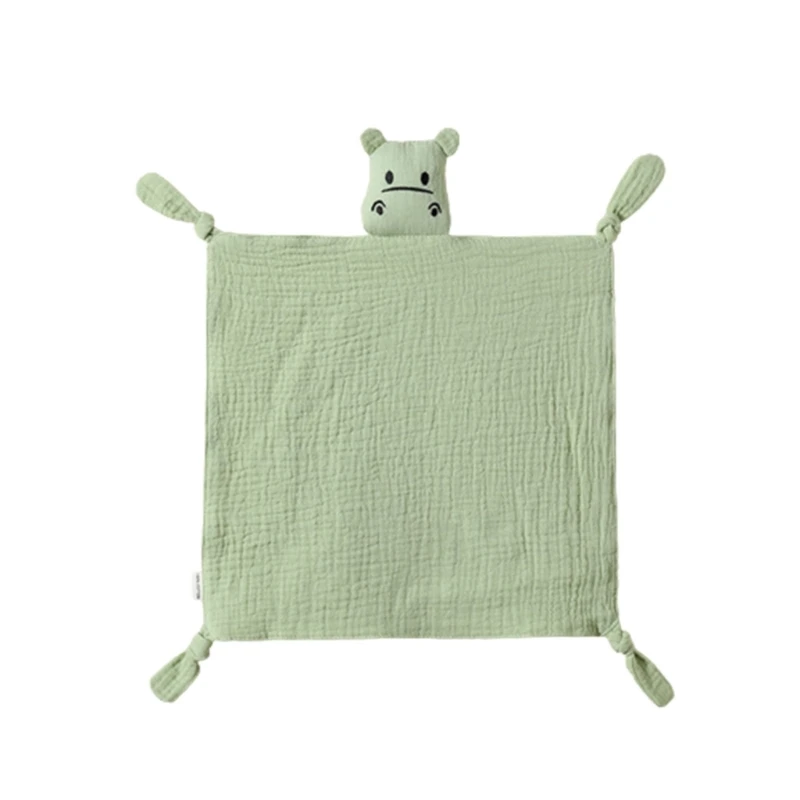 Calma y consuela a tu bebé con nuestro paño de chupete de hipopótamo. Hecho de gasa de algodón, proporciona un toque y una compañía cálida, ayudando a su bebé a relajarse y conciliar el sueño.