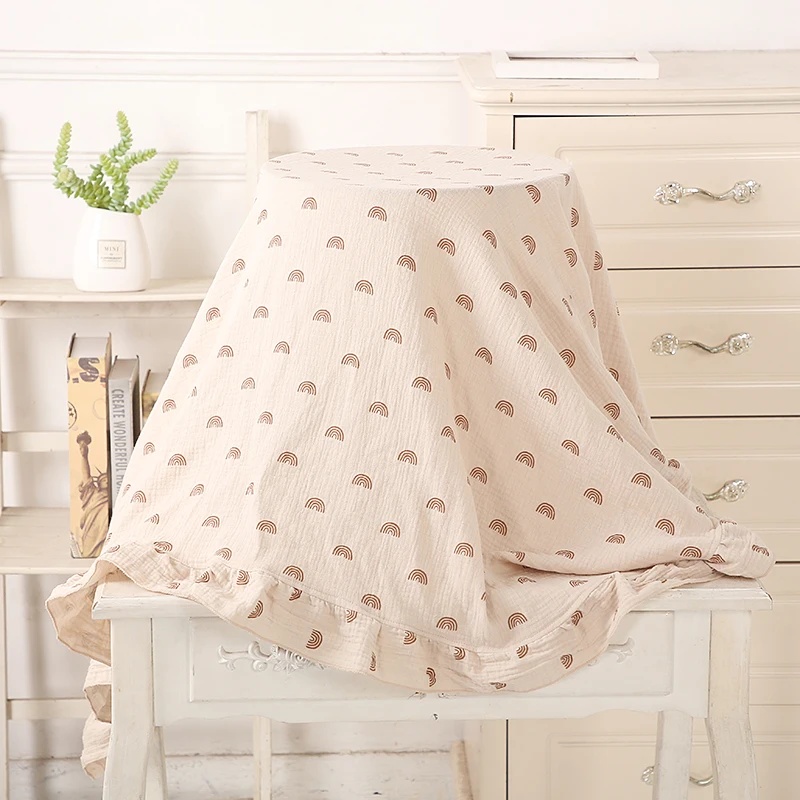 Manta de recepción de algodón orgánico, manta envolvente de muselina para bebé, ropa de cama infantil para recién nacidos, accesorios para bebés con volantes, cuadros para recién nacidos
