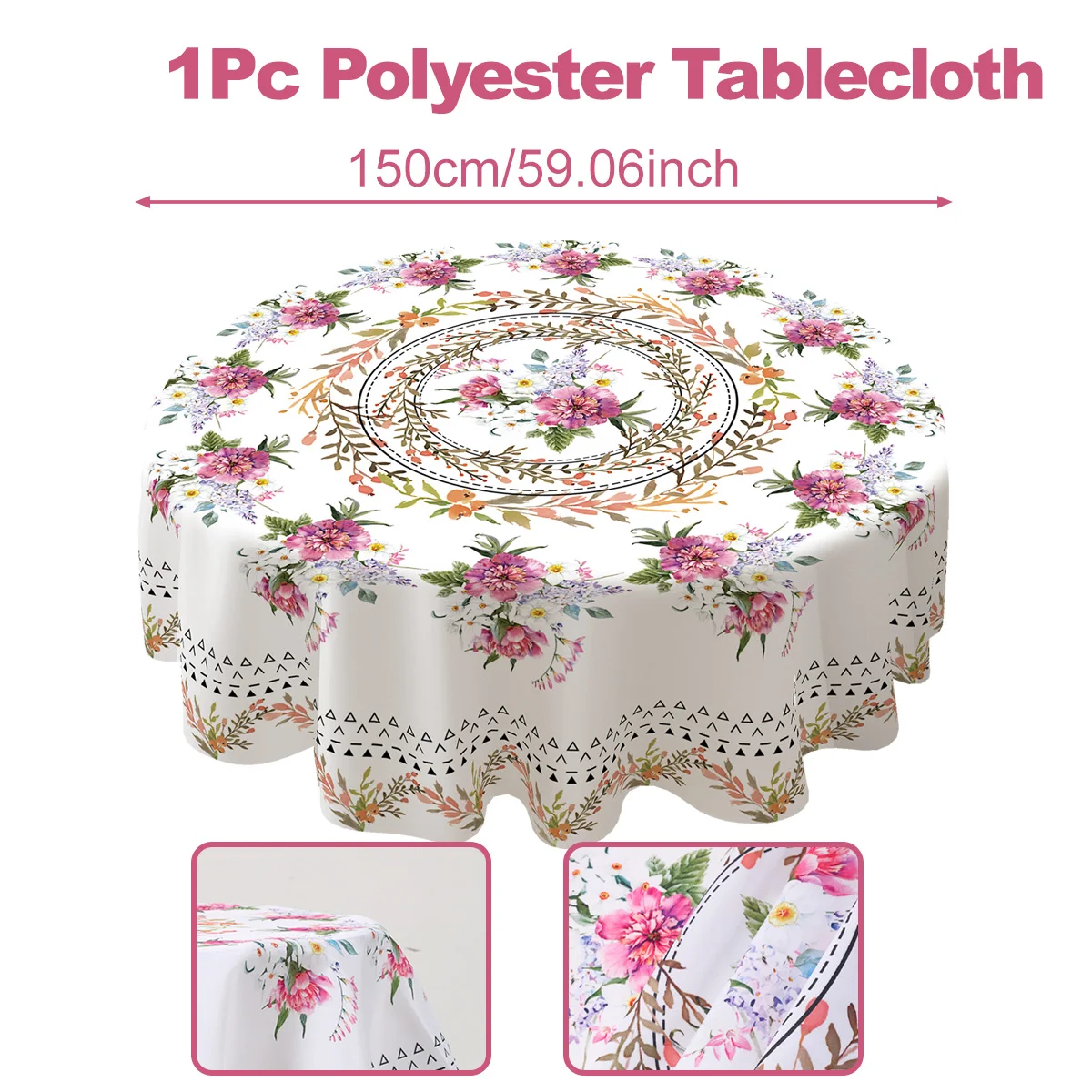 Manteles redondos de girasol, mantel estampado de hojas y flores silvestres para decoración de mesa de comedor, fiesta de boda, vacaciones en casa