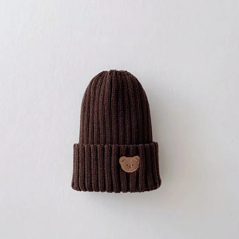 Milangel-gorro de punto con bordado de cabeza de oso para niños y niñas, gorros de Color caramelo