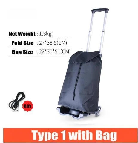 Mini carrito de compras con barra de tracción de aleación de aluminio, coche de equipaje portátil plegable, remolque de carrito resistente para el hogar, vagón de artículos pequeños