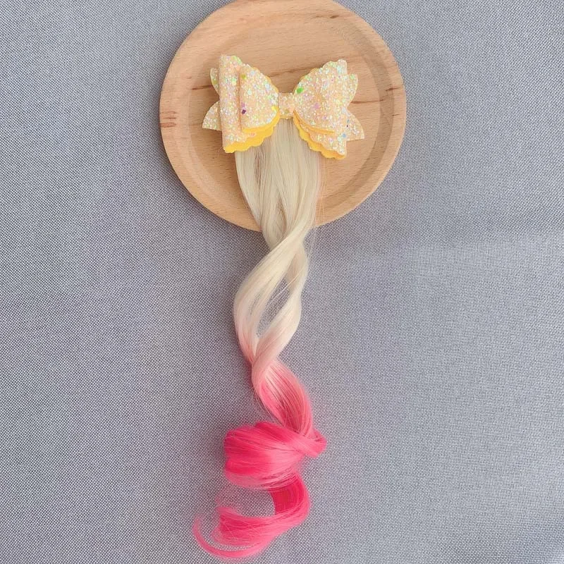 Nuevas pelucas coloridas para niñas, adorno para el cabello con cola de caballo, diademas con lazos de princesa, bandas de goma, tocados trenzados, regalo para niños, accesorios para el cabello