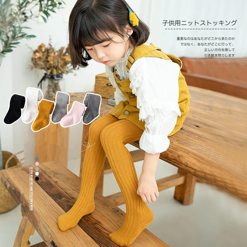 1 a 6 años 6 colores Otoño Invierno Color puro medias para niños pantimedias de punto de algodón para niñas pantalones blancos y negros para niños-Por favor, elija el tamaño según la longitud de la pierna, la edad es solo para referencia.