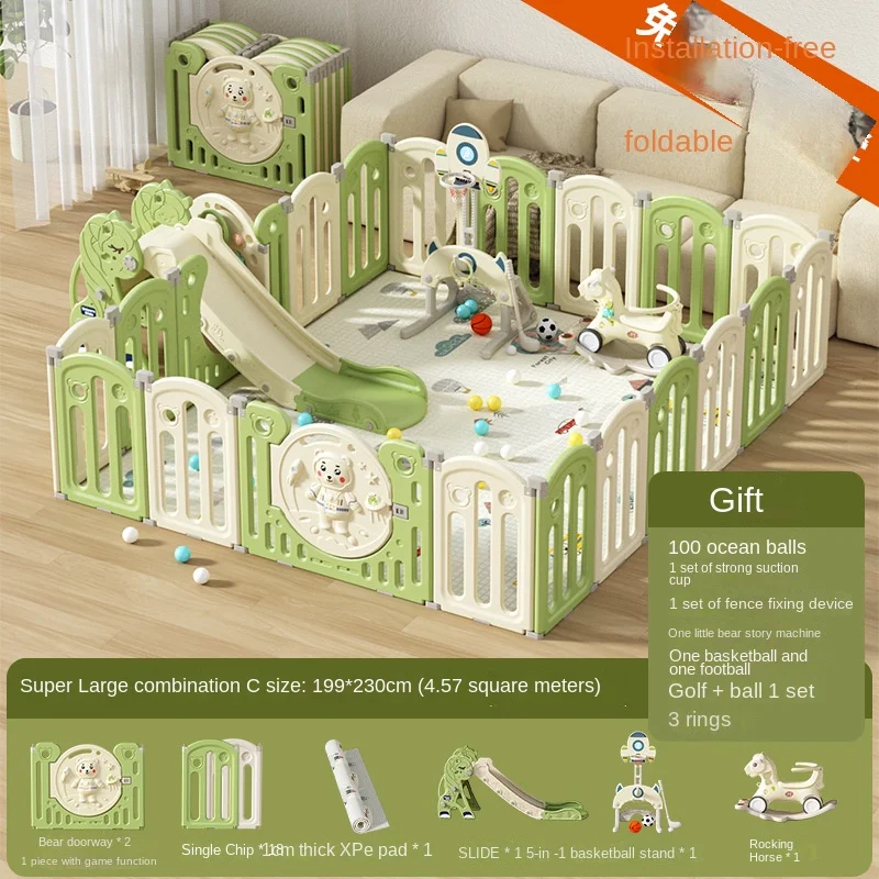 Diseño, La Valla adopta un diseño plegable, fácil de almacenar, transportar y mover. Al mismo tiempo, está hecho de materiales respetuosos con el medio ambiente, no tóxicos y resistentes al desgaste con una superficie suave, lo que proporciona un ambiente seguro, cálido y cómodo para los bebés.
