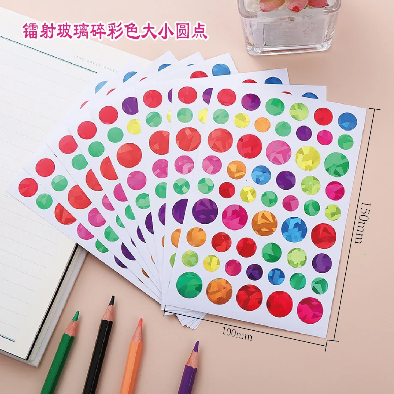 Pegatinas holográficas brillantes para niños, 10 hojas, estrellas pequeñas, puntos, corazones, recompensa, decoración DIY