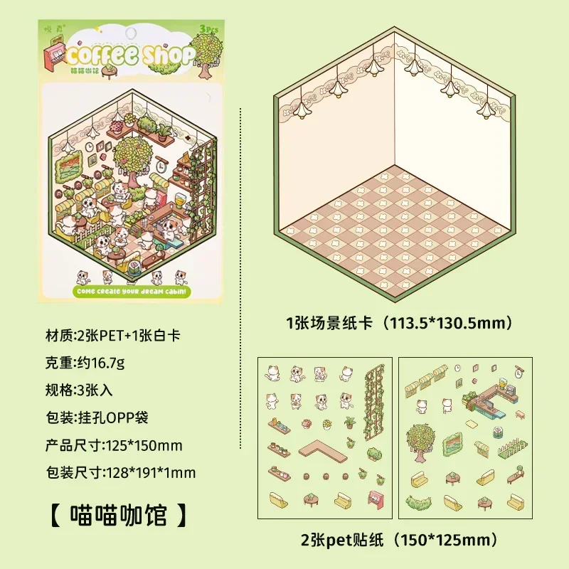 Pegatinas de paisaje de la serie Dream House, paquete de pegatinas de paisaje 3D exquisitos y divertidos con dibujos animados personalizados para estudiantes