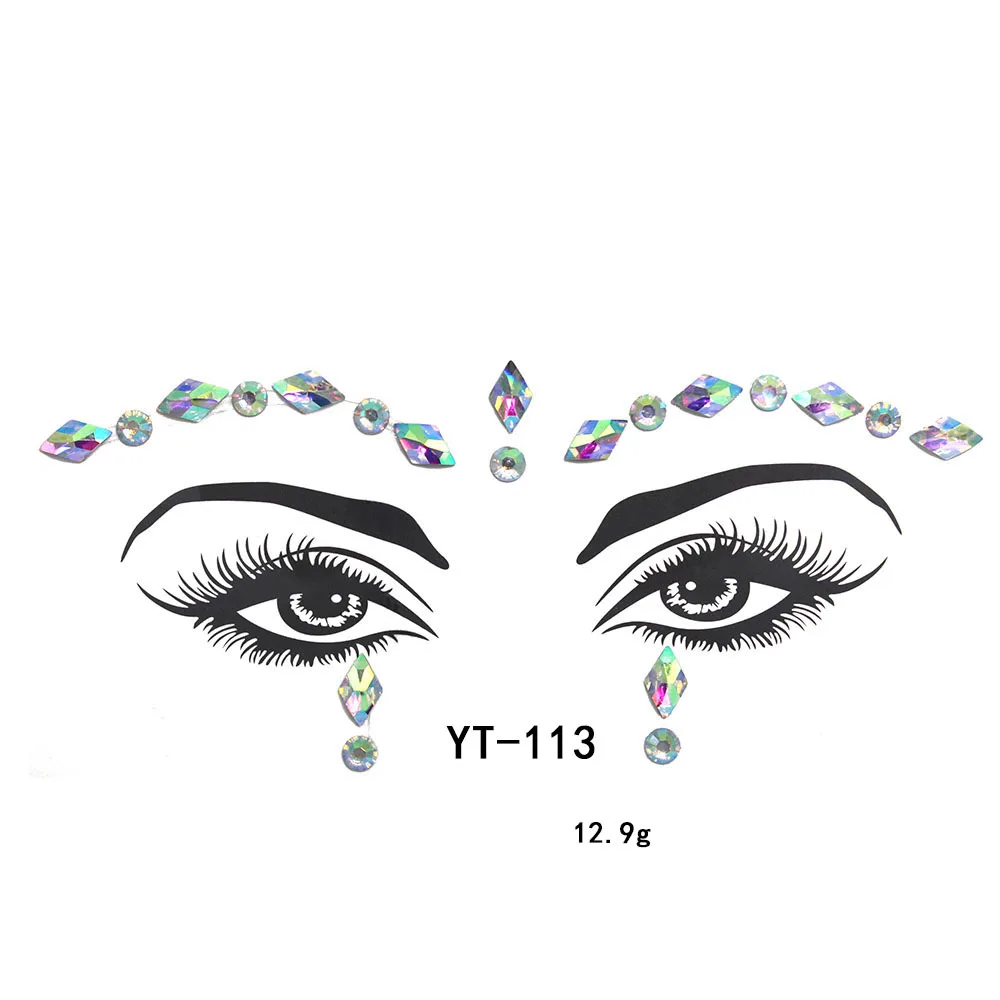Pegatinas de tatuaje facial Sexy 3D para mujer, tatuajes temporales, tatuaje falso con purpurina, diamantes de imitación para mujer, joyas faciales de fiesta