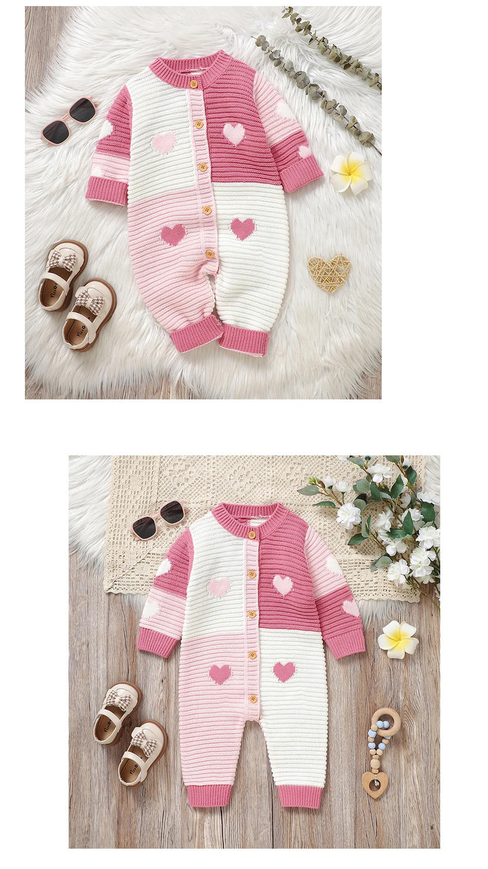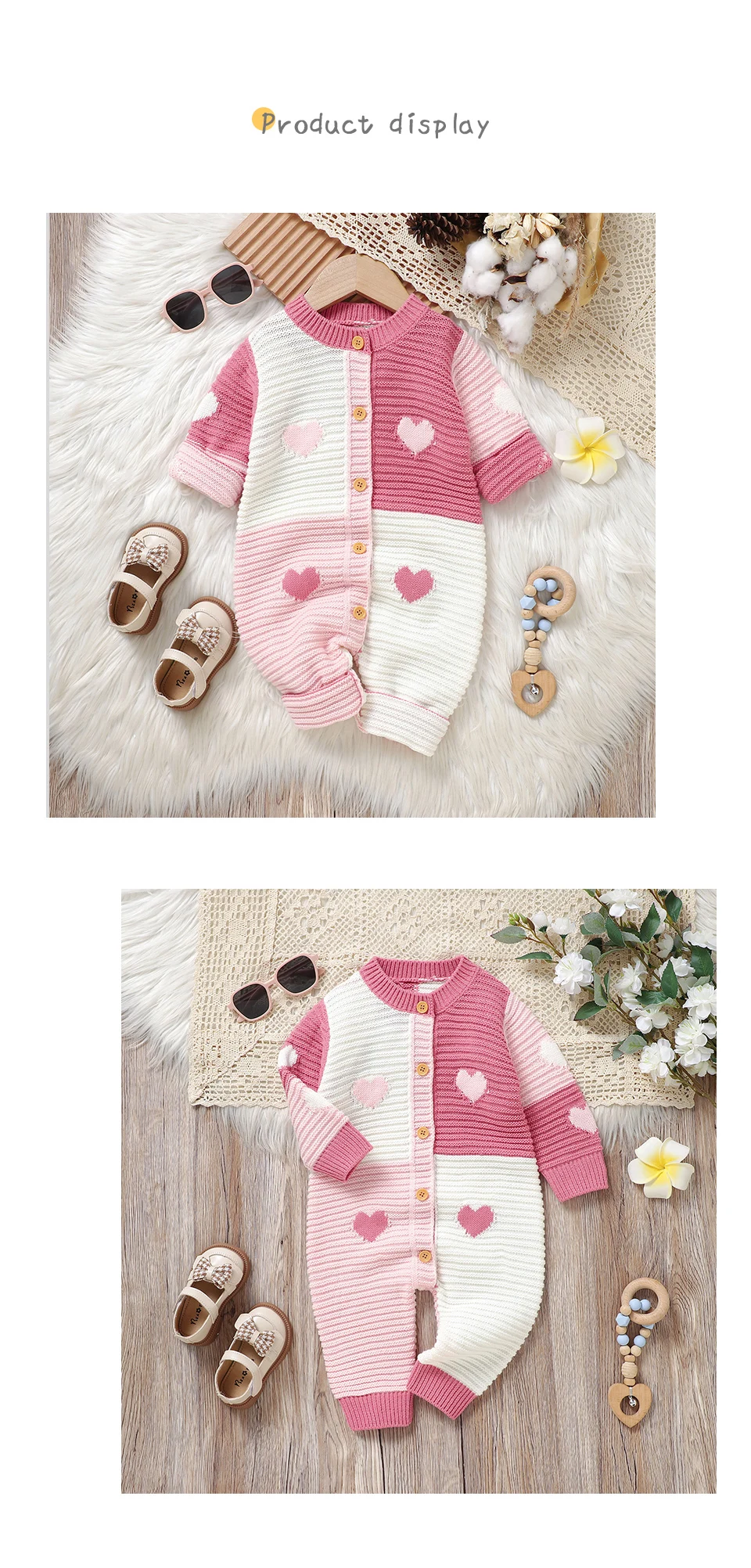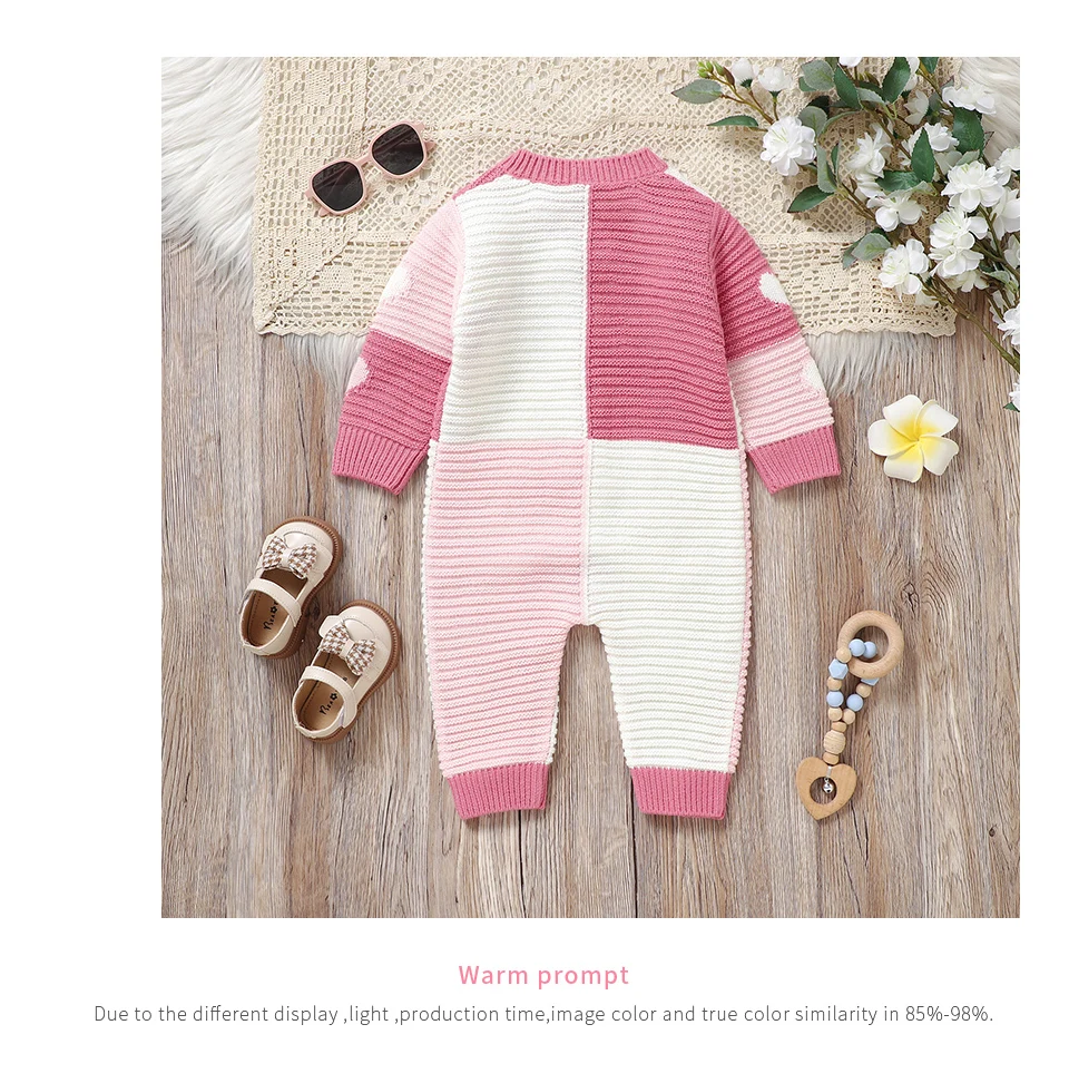 Peleles tejidos para niñas recién nacidas, monos de manga larga con cuello redondo, monos de 0 a 18m, ropa Infantil de una pieza para niños, ropa de Otoño Invierno